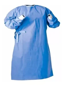 La bata quirúrgica desechable de tela no tejida SMS de 30gr,No esteril. Indicada para protección del personal médico y asistencial con alta exposición a fluidos y sustancias contaminantes, actuando como barrera resistente a la penetración de microorganismos. EPP indicado para la prevención de infecciones asociadas a la asistencia sanitaria.
